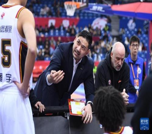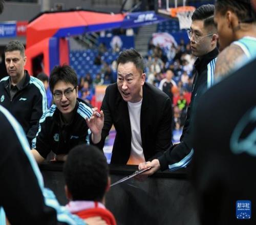 1月15日,青島嶗山啤酒隊(duì)主教練劉維偉(中)在比賽中向隊(duì)員布置戰(zhàn)術(shù)。新華社記者 李紫恒 攝