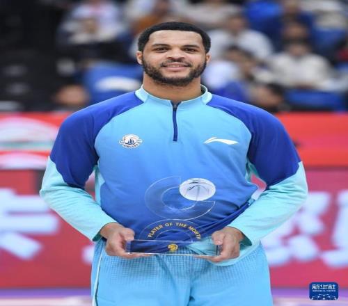 1月15日,青島嶗山啤酒隊(duì)球員韋瑟斯龐在賽前接受“月度最佳球員”獎。新華社記者 李紫恒 攝