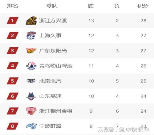 積分榜第6名則屬于山東隊,最近山東隊狀態(tài)火爆,截止到目前,他們已經豪取8連勝,球隊的戰(zhàn)績也變成10勝4負。不過,由于少賽一輪的緣故,山東隊的排名稍微吃虧,暫時排在積分榜第6名。而排在第7名的是浙江隊,他們的戰(zhàn)績是9勝6負。積分榜第8名則屬于寧波隊,作為本賽季的黑馬之一,寧波隊目前已經拿到了8勝7負的戰(zhàn)績,暫居積分榜第8名,這與他們上賽季的表現(xiàn)比起來,已經提升了不止一個檔次。