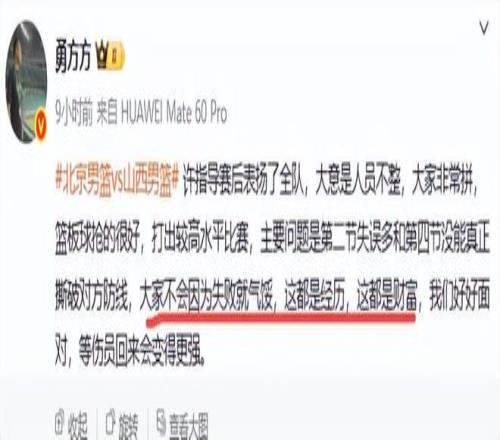 此戰(zhàn)過后,北京隊(duì)最近的四場(chǎng)比賽一勝三負(fù),北京球迷接受不了,直接開噴,矛頭直指主帥許利民。但是許利民在新聞發(fā)布會(huì)贏了,也可換言之,球輸了,卻許利民在發(fā)布會(huì)上沒有輸。哈哈許利民在昨晚的發(fā)布會(huì)又出金句了。大家熟記他之前的金句:“計(jì)劃內(nèi)輸”、“輸了實(shí)際是贏了”、“輸球意義重大”。那么昨晚許利民出的是什么金句呢?
