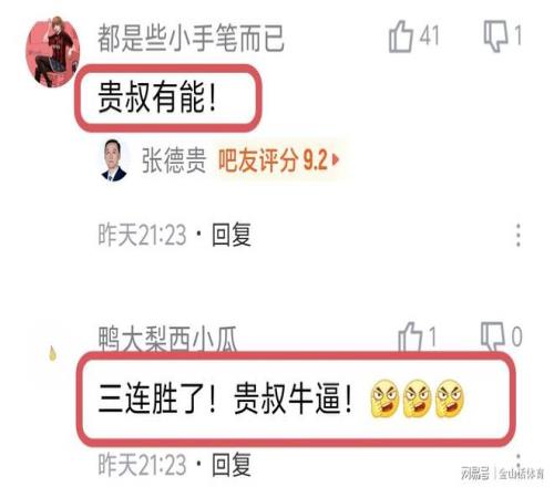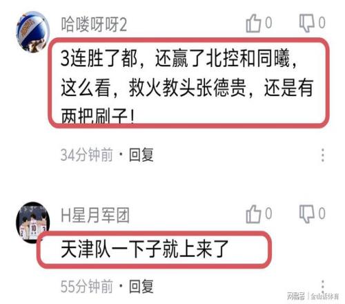 天津隊3連勝,也讓網(wǎng)友們紛紛為老帥張德貴叫好?!百F叔越贏球,越能體現(xiàn)出前邊那位有多水?!?;“3連勝了都,還贏了北控和同曦,這么看,救火教頭張德貴,還是有兩把刷子!”;“天津隊一下子就上來了”;“貴叔有能力!”;“三連勝了!貴叔牛逼!”……