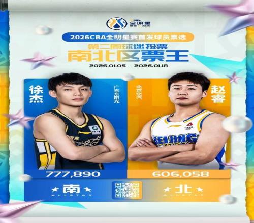 1月19日,CBA聯(lián)賽公司對外公布了2026年全明星第二次票選的結(jié)果。雖然仍然處于傷病恢復(fù)階段,但北汽男籃后衛(wèi)趙睿仍然贏得了球迷們的認可與支持,他在這次投票中繼續(xù)獲得北區(qū)票王,他目前票數(shù)是606058。南區(qū)票王,也是全明星票王是廣東男籃后衛(wèi)徐杰,他目前票數(shù)是777890。