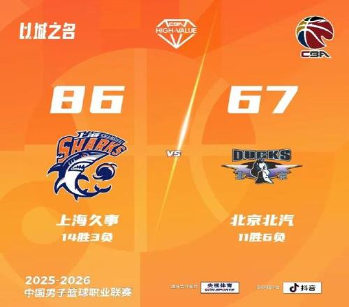 缺兵少將,北汽男籃客場(chǎng)不敵上海