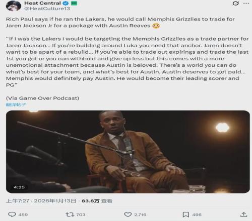 湖人首發(fā):東契奇、斯瑪特、拉拉維亞、詹姆斯、艾頓。國王首發(fā):威少、拉文、德羅贊、阿丘瓦、雷諾。湖人后衛(wèi)里夫斯因傷繼續(xù)休戰(zhàn),今天詹姆斯的經(jīng)紀人里奇-保羅在播客中說道:“我會用里夫斯交易灰熊的3J,這對湖人和里夫斯都好。”