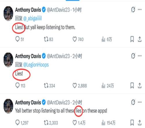 前,名記Shams率先報道,戴維斯預(yù)計將接受左手韌帶修復(fù)手術(shù),缺席賽場數(shù)月。戴維斯對Shams的報道予以否認(rèn),并通過社交媒體進(jìn)行反駁?!按蠹易詈脛e再相信這些平臺上的謊言了。”戴維斯在社媒上寫道,隨后又在多條援引這一突發(fā)新聞的帖子下回復(fù)“謊言”二字。在今天將前往洛杉磯與手部專家會面后,濃眉確定無需接受手術(shù)。Shams隨后也修正了自己的報道,不過未來六周,濃眉是肯定無法出場了。