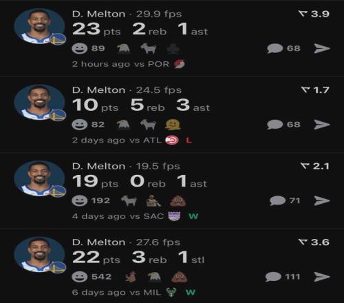 最近四場(chǎng)比賽,梅爾頓合計(jì)投籃48中28(命中率約58%),其中三分球25中12(命中率48%)。