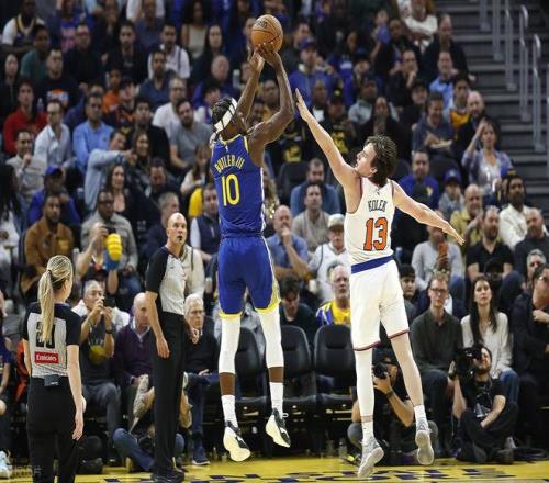 次節(jié)比賽,勇士延續(xù)進攻火力,連續(xù)兩節(jié)得分突破30+,進攻端保持穩(wěn)定輸出的同時,防守端也發(fā)力施壓,首次將尼克斯單節(jié)得分限制在25分以下。比賽中段,勇士順勢將比分追至40-40平,隨后雙方陷入膠著,比分交替上升,持續(xù)纏斗至52-52平。關(guān)鍵時刻勇士果斷沖擊內(nèi)線取分,以58-57反超比分。之后勇士牢牢掌控微弱優(yōu)勢并逐步擴大,此節(jié)單節(jié)凈勝8分,上半場結(jié)束時,勇士以62-59實現(xiàn)反超。