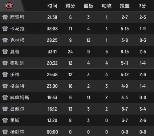 來看下本場(chǎng)數(shù)據(jù):夏普24分9板5助攻,格蘭特16分,霍勒迪12分4板4助,克林根9分12板,羅威6分11板,里斯8分3板。老鷹的麥科勒姆20分3板4助,奧孔武26分9板2助,約翰遜12分11板6助,沃克11分6板7助。楊瀚森昨日表現(xiàn)那么好,本場(chǎng)無緣出場(chǎng),卡馬拉15投5中,三分9中1,鐵成這樣,僅得11分,卻能上場(chǎng)38分鐘,斯普利特的用人遭到質(zhì)疑。