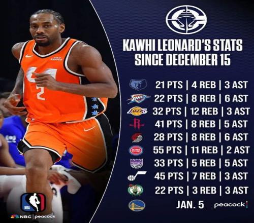 特別結合近期快船戰(zhàn)績回暖,更是完全離不開倫納德的火力輸出。