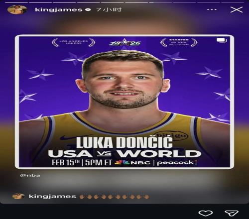 在全明星首發(fā)陣容公布后,詹姆斯在社交媒體轉(zhuǎn)發(fā)祝賀隊(duì)友東契奇入選。
