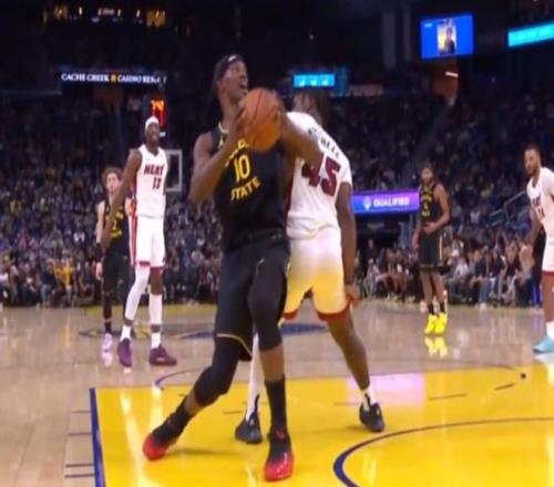 比賽進行到第三節(jié)還剩7分多鐘,勇士以77-75微弱領(lǐng)先。巴特勒在試圖接隊友高吊傳球并完成上籃時,與熱火后衛(wèi)戴維恩·米切爾發(fā)生身體接觸。