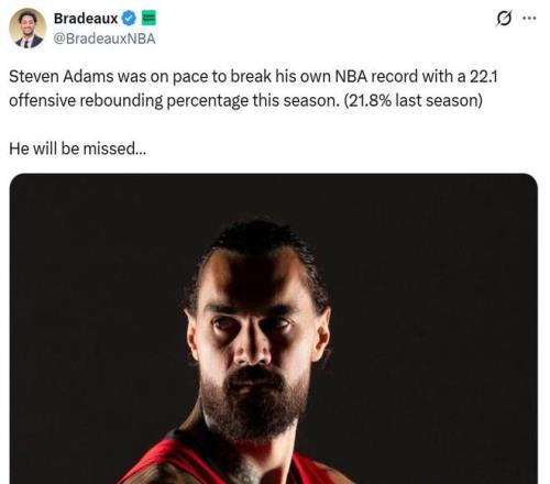 對(duì)于火箭隊(duì)來說,這無疑是個(gè)巨大的打擊,因?yàn)閬啴?dāng)斯的前場籃板能力是火箭隊(duì)“投搶模式”的核心支柱,本賽季當(dāng)亞當(dāng)斯在場時(shí),火箭進(jìn)攻籃板率高達(dá)45%,不在時(shí)下滑到38.6%。