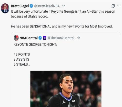 面對喬治這樣的表現(xiàn),名記Brett Siegel不禁感嘆:“如果喬治因為戰(zhàn)績影響沒能入選全明星那真的讓人感到遺憾,本賽季他交出驚艷表現(xiàn),是我心中進步最快球員人選?!?/p>
