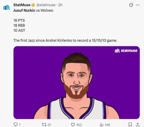 除了兩大新星之外,爵士隊之所以能夠完成爆冷也與內(nèi)線老將努爾基奇的爆發(fā)有關(guān),本場努爾基奇11中7爆砍16分18板10助三雙數(shù)據(jù),外加1斷1帽。