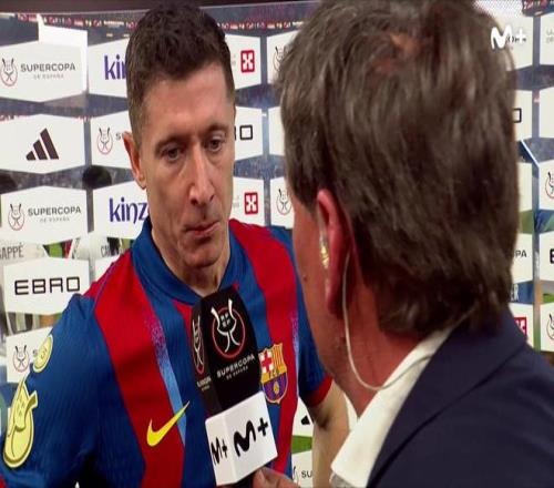 在巴薩與皇馬的西超杯決賽中,萊萬為球隊(duì)攻入第二球,幫助紅藍(lán)軍團(tuán)以3-2擊敗對手捧杯,賽后他接受了Movistar+的采訪。