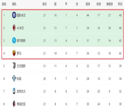 10!榜首4強(qiáng)全勝,意甲爭(zhēng)冠大局:米蘭差國(guó)米3分,1勁旅成黑馬