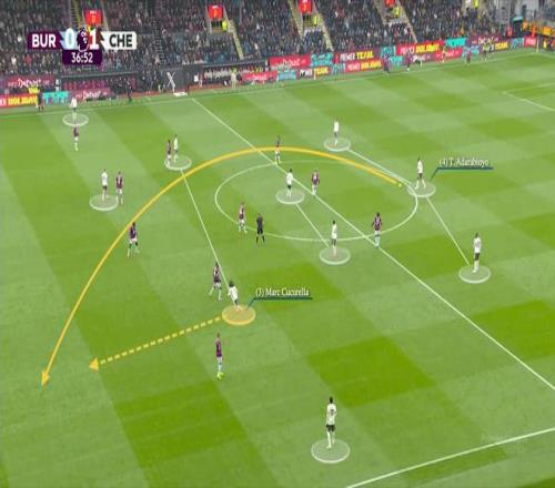 扮演這個角色的常常是庫庫雷利亞,他頻繁提供前插和套邊跑動,這正成為切爾西在面對眾多深度防守球隊時越發(fā)關鍵的工具。這幫助他們在十一月2-0客勝伯恩利的比賽中,擊破了對手頑固的防守大巴。
