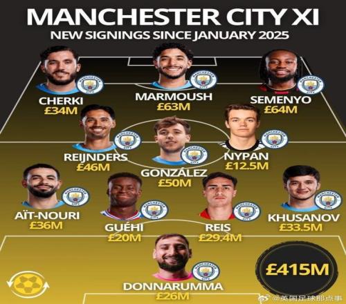 曼城自2025冬窗來買下的新人,的確“壕”。