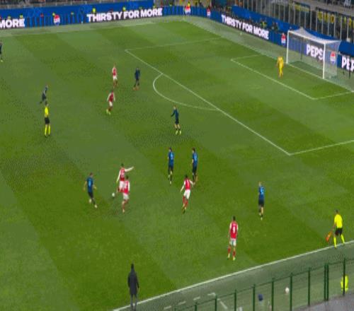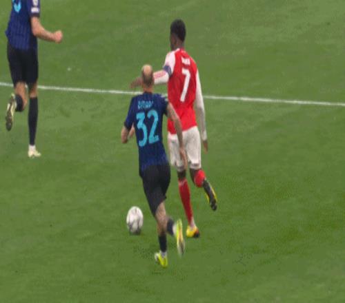 第62分鐘,薩卡獲得良機,巴斯托尼精彩放鏟破壞