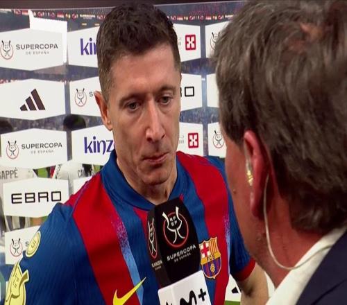 在巴薩與皇馬的西超杯決賽中,萊萬(wàn)為球隊(duì)攻入第二球,幫助紅藍(lán)軍團(tuán)以3-2擊敗對(duì)手捧杯,賽后他接受了Movistar+的采...